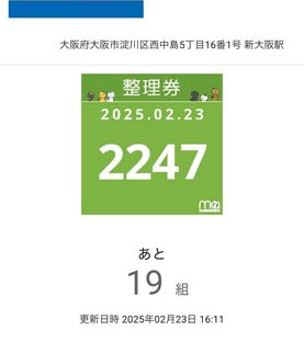 新幹線新大阪駅の改札口で、エラーメッセージが、24日からの有効期間に?慌てて自販機で変更を、有人窓口への案内にQRコードをら?入力中に19組待ちの、表示が。にせんにひゃくよんじゅななが、マイクの案内じ 外国の方々には解らない。でも、携帯電話からの情報で20分以上待つことはなかった。23日の発行日にしてもらい27番線に。改札口から一番近いエレベーターに外国人の長蛇の列にギャフン。エスカレーターを求めてホームへ、のぞみは発車した後、10分後の列車で立ったままで、京都駅まで。自由席車両まで、歩けない。8号しゃのデッキに立ったままで。京都駅に。